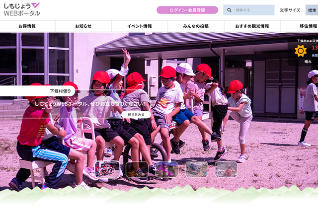 ▲下條村の地域情報サイト『しもじょうWEBポータル』