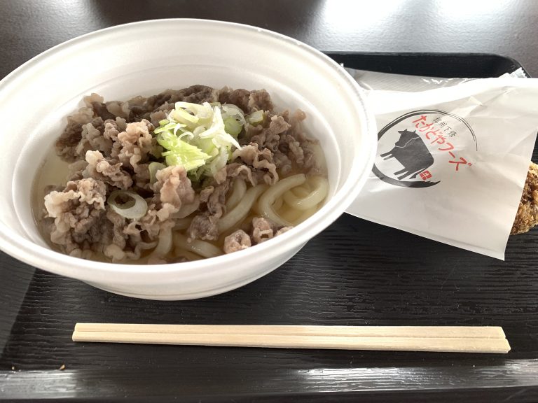 たかどやフーズで肉うどんと和牛メンチをいただきました!! とても美味しい!!特に和牛メンチは肉肉しさが最上級!こんな近所で食べれることに感謝✨