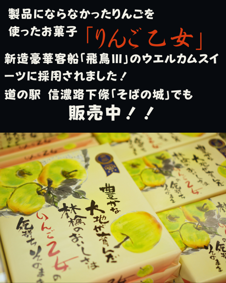 そばの城でも取り扱っている「りんご乙女」というお菓子。 なんと4月に造船された豪華客船「飛鳥Ⅲ」のウエルカムスイーツとして採用されました! 豪華客船には乗れないけれど気分を味わいたい方にはぴったり! …
