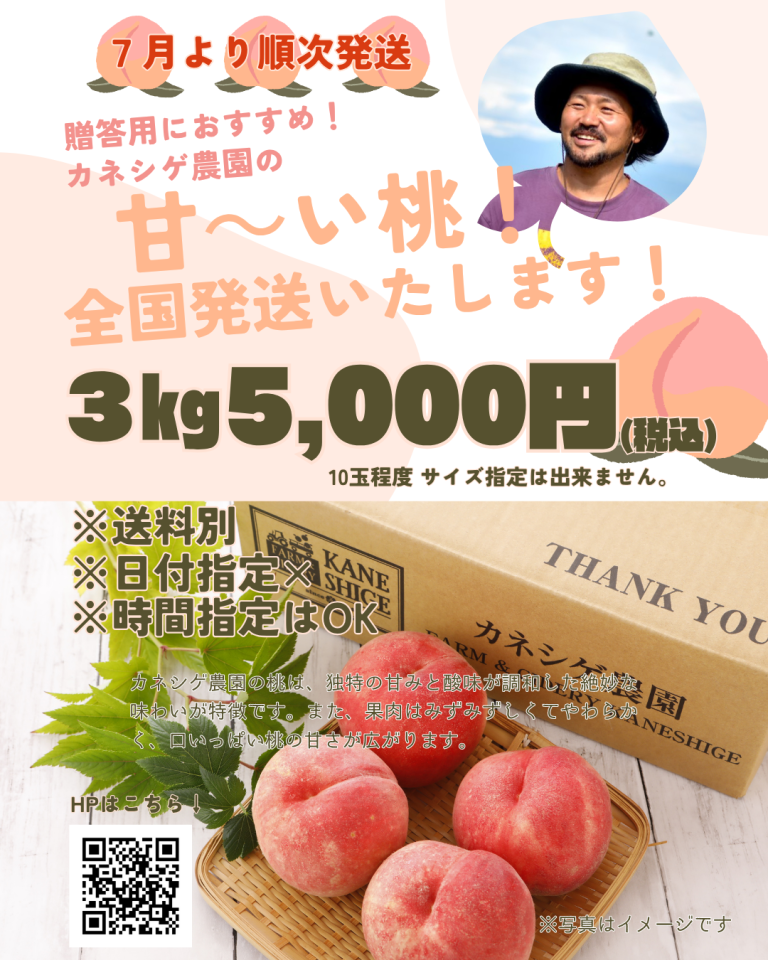 道の駅 信濃路下條「そばの城」で今日からカネシゲ農園さんの桃の発送受注を開始しました❗ カネシゲ農園さんの桃はとっても甘くて美味しいですよ✨ この時期お中元など贈答用にピッタリな商品です❗ 桃の発送の…