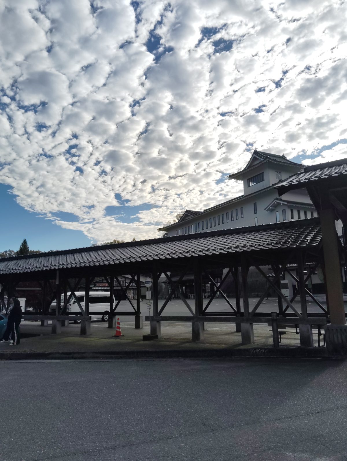 道の駅の朝、上空を見上げると、見事な羊雲。おもわずシャッターをきった。