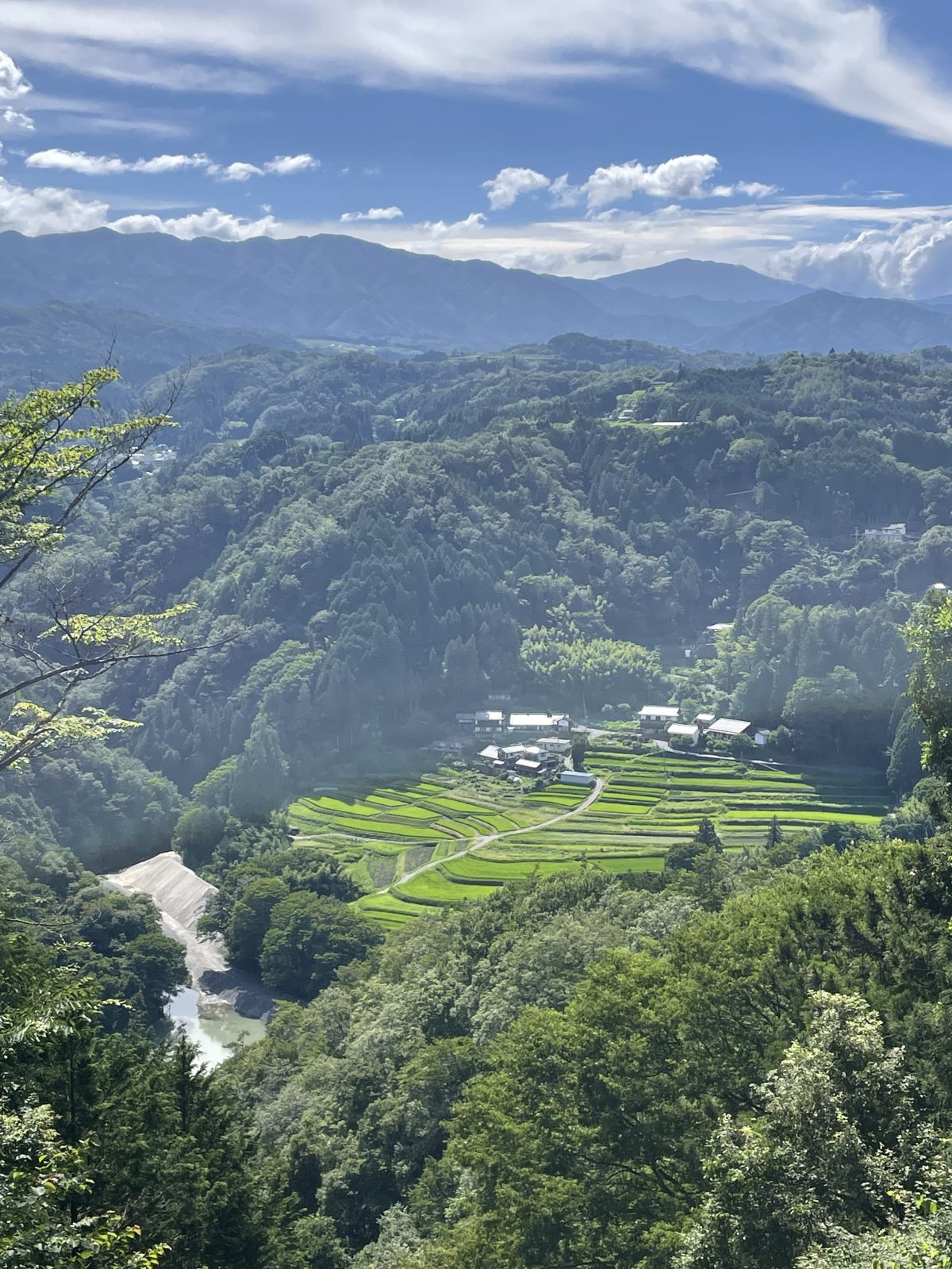 泰阜側から撮影した山あいの田園風景です。あまりの絶景に車を停めてシャッターを切ってしまいました。
